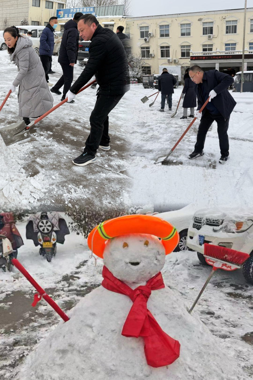 雪情就是命令,行动彰显担当。在清扫现场,全体人员不畏严寒、分工协作,手持铁锹、扫帚等工具,对辖区主次干道、人行步道等重点区域开展集中清扫,重点清除路面积雪与潜在结冰隐患。大家齐心协力、干劲十足,挥舞工具的身影在皑皑白雪中形成一道亮丽风景线,高效推进清扫工作的同时,现场始终洋溢着欢声笑语。各科室充分发挥创意,在完成清扫任务后就地开展堆雪人活动,造型各异的雪人为冬日增添了别样温馨与乐趣,展现出机关干部团结奋进、乐观向上的良好风貌。