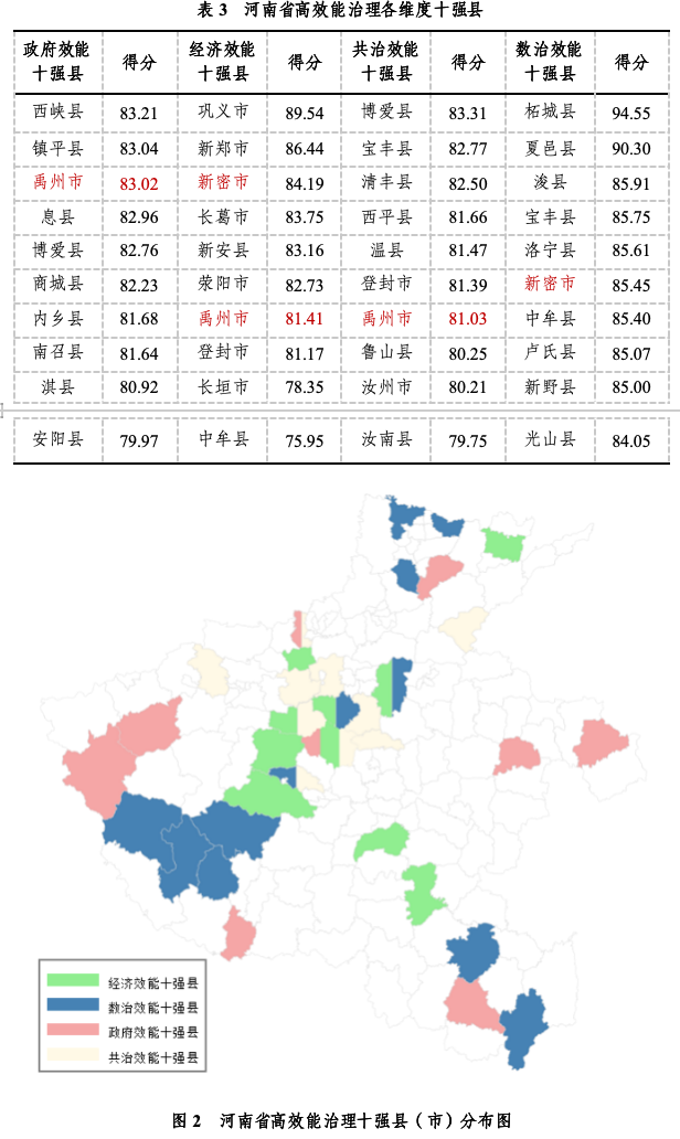 《报告》从政府效能、经济效能、共治效能、数治效能四个维度,对河南省除市辖区之外的102个县(市)开展县域高效能治理综合评价。