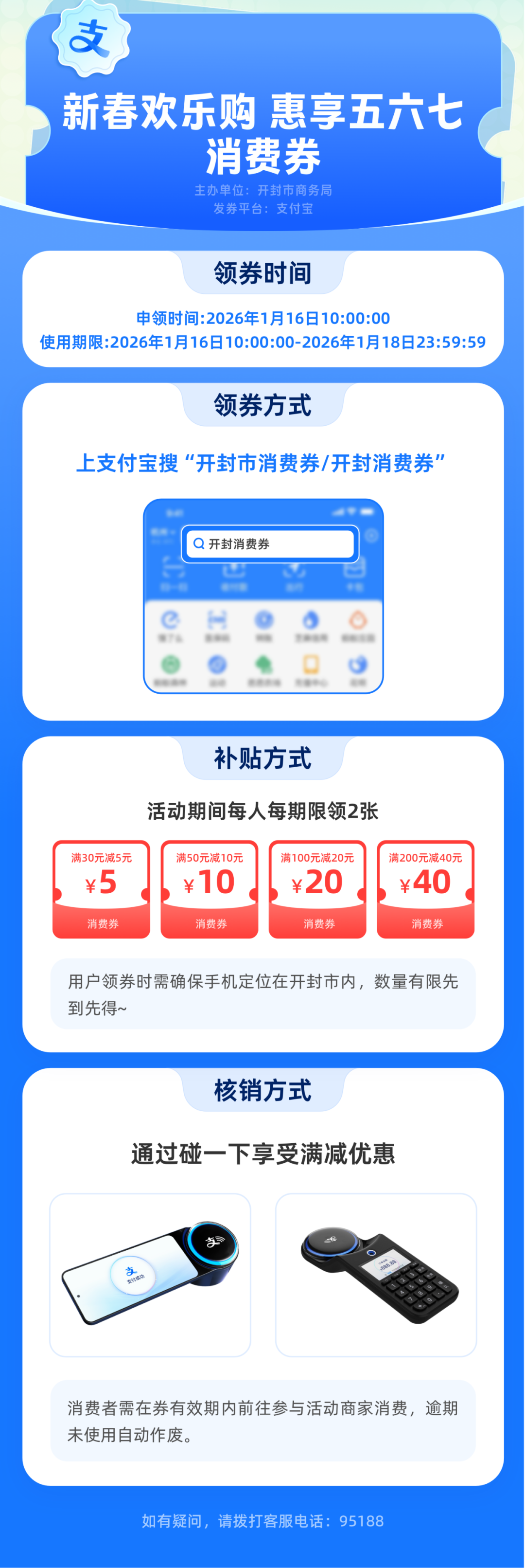 为持续释放消费潜力,开封市将于本周发放第二期“新春欢乐购 惠享五六七”零售、餐饮满减消费券。数量有限,先抢先得!