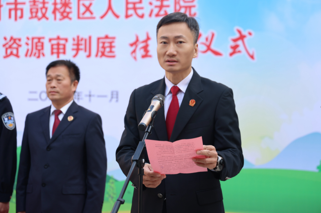 杨鸿志和李雅奇共同为“生态环境资源审判庭”揭牌,标志着鼓楼区生态环境资源审判工作迈入专业化、规范化新阶段。