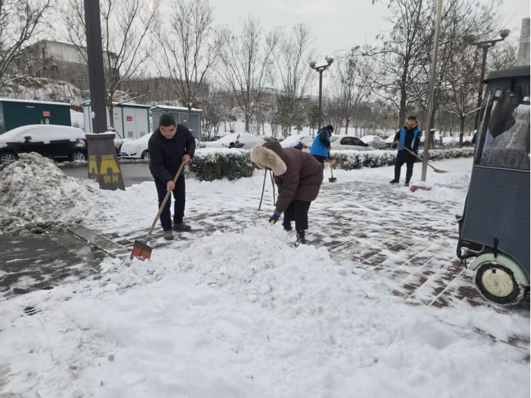 卫健委主任带头带领工作人员,对院内积雪积冰进行集中清理。大家不畏严寒、分工协作,挥锹铲雪、清扫路面,全力打通“安全通道”,确保工作人员和办事群众通行安全顺畅。